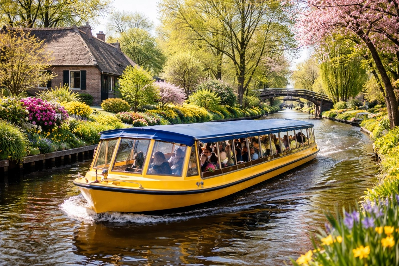Een van de beste manieren om Giethoorn te verkennen is vanaf het water. Een rondvaart Giethoorn biedt een uniek perspectief op het dorp en zijn omgeving. Terwijl je rustig over de grachten glijdt, kun je genieten van het uitzicht op de schilderachtige huizen en de weelderige natuur. Het geluid van kabbelend water en het gezang van vogels maken de ervaring nog magischer.